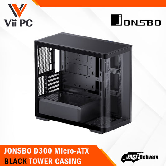 JONSBO D300 Large Micro-ATX BLACK/WHITE TOWER CASING - One-piece Glass Panel AO270 Deg View , MATX Back Plug-in BTF MB, Support 360 AIO, Support 40-series GPU, No Fans Included