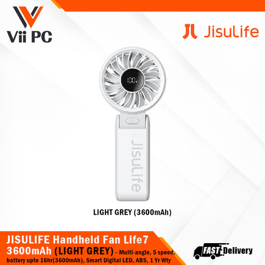 JISULIFE Handheld Fan Life7 3600mAh/5000mAh (Light Grey/Pink/Black) 5 speed gears, Multi-Angle (30° to 180°), ABS material, 1 Year Wty