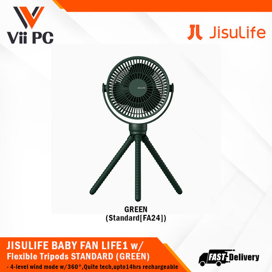 JISULIFE BABY FAN LIFE1 w/ Flexible Tripods, 4-level wind mode w/360°, Quite tech, up to 14hrs rechargeable, eco-friendly material STANDARD/MINI (GREEN/WHITE)