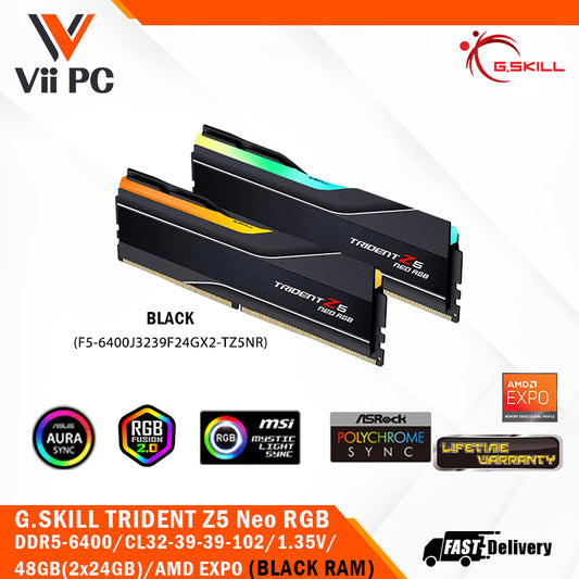 G.SKILL TRIDENT Z5 Neo RGB DDR5-6400 / CL32-39-39-102 / 1.35V / 48GB(2x24GB) / AMD EXPO Support / Limited Lifetime Wty (BLACK/WHITE) PC RAM