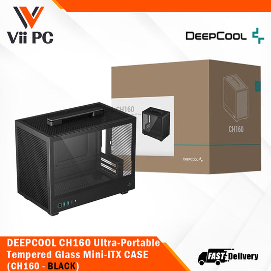 DeepCool CH160 Ultra-Portable Tempered Glass Full-Sized Air Cooler Support Mini-ITX CASING, BLACK/WHITE