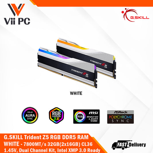 G.SKILL Trident Z5 RGB DDR5 BLACK/WHITE RAM CL36 7800MT/s 32GB(2x16GB) 1.45V, Dual Channel Kit, Intel XMP 3.0 Ready