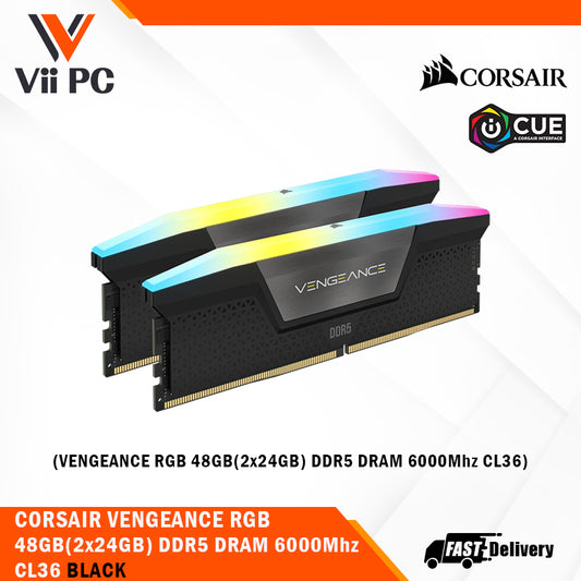 CORSAIR VENGEANCE RGB 48GB (2x24GB) DDR5 DRAM 6000Mhz / 6400Mhz CL36 Memory Kit - Black
