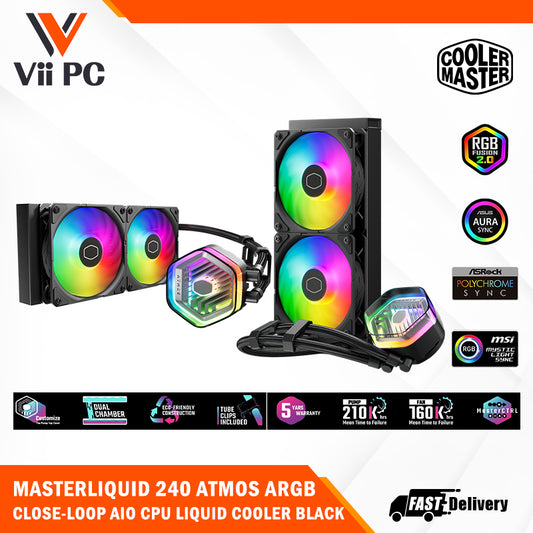 COOLER MASTER MASTERLIQUID 240/360 ATMOS ARGB CLOSE-LOOP AIO CPU LIQUID COOLER, Customize Pump, Sickleflow Edge PWM Fans, 240mm/360mm Radiator, CryoFuze (AMD AM5/AM4, Intel LGA1700/1200)