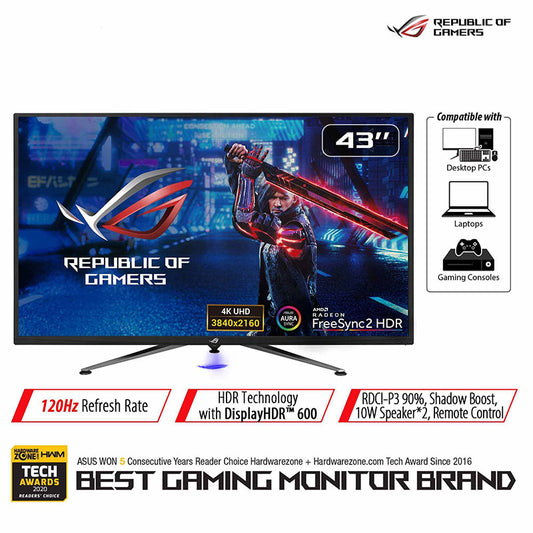 ASUS ROG Strix XG438Q HDR Large Gaming Monitor - 43", 4K (3840 x 2160), 120Hz, FreeSync™ 2 HDR, DisplayHDR™ 600, DCI-P3 90%, Shadow Boost, 10W Speaker*2, Remote Control