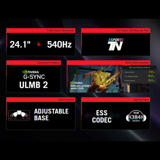 ASUS ROG Swift Pro PG248QP 24.1" FHD(1920 x 1080) NVIDIA® G-SYNC® ESports Gaming Monitor 540 Hz overclocked (above 360Hz), Esports-TN panel, NVIDIA® Reflex Analyzer, ULMB 2, adjustable base, ESS codec, DisplayHDR™ 400