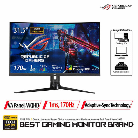 ASUS ROG Strix XG32VC Curved Gaming Monitor - 31.5" WQHD (2560 x 1440), 170Hz* (Above 144Hz), 1ms MPRT, Extreme Low Motion Blur Sync, 125% sRGB, FreeSync Premmium Pro, DisplayHDR™ 400