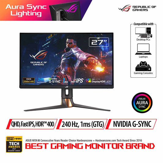 ASUS ROG Swift PG279QM NVIDIA® G-SYNC® Gaming Monitor – 27" QHD (2560 x 1440), NVIDIA Reflex Latency Analyzer, 240Hz, Fast IPS, 1 ms (GTG), DisplayHDR™ 400