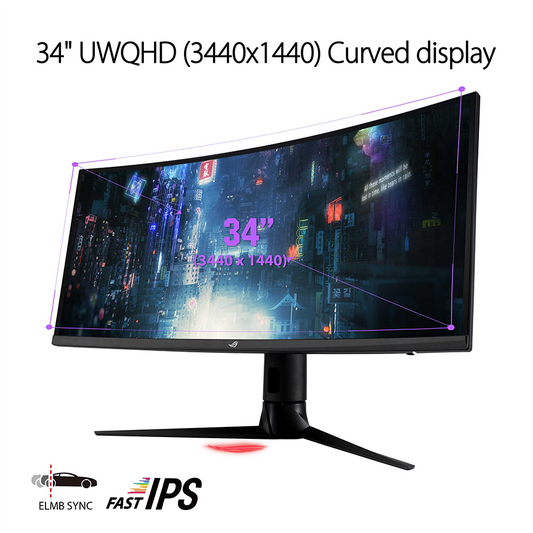 ASUS ROG Strix XG349C Ultra-wide Curved Gaming Monitor - 34” UWQHD (3440 x 1440), 180Hz, 1ms, ELMB Sync, 135% sRGB, G-Sync Compatible, DisplayHDR 400, Eye Care, USB-C, DisplayPort, HDMI