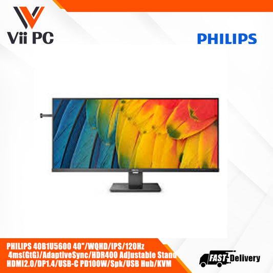 PHILIPS 40B1U5600 * 40"/WQHD/IPS/120Hz * 4ms(GtG)/AdaptiveSync/HDR400 * Adjustable Stand * HDMI2.0/DP1.4/USB-C PD100W/Spk/USB Hub/KVM Business Monitor