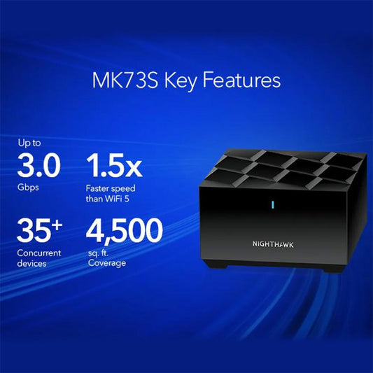 NETGEAR Nighthawk Dual-Band WiFi 6 Mesh System, 3 Pack (MK73S) - Up to 3Gbps wireless speeds, NETGEAR Armor™, coverage up to 4,500 sq. ft.