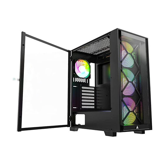 Montech AIR 100 ARGB Micro-ATX Case - 4 ARGB Fans, Lighting Controller, Fine Mesh Front Panel Design (Black/White)