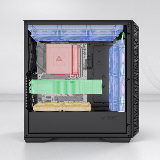 Montech AIR 1000 Premium ARGB ATX Mid Tower Case - Detachable Mesh, Tempered Glass Front Panel and Swivel Glass Side Panel (Black/White)