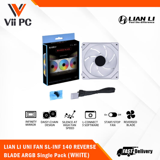LIAN LI UNI FAN SL-INF 140 Single Pack REVERSE without Controller - BLACK or WHITE / 2 Yrs Wty
