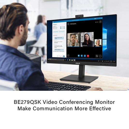 ASUS BE279QSK Video Conferencing Monitor - 27" FHD, IPS, Frameless, adjustable 2MP FHD Webcam, Mic Array, Stereo Speakers, Height Adjustable, Ergonomic Design, HDMI, Eye Care, Low Blue Light, Flicker Free, Wall Mountable