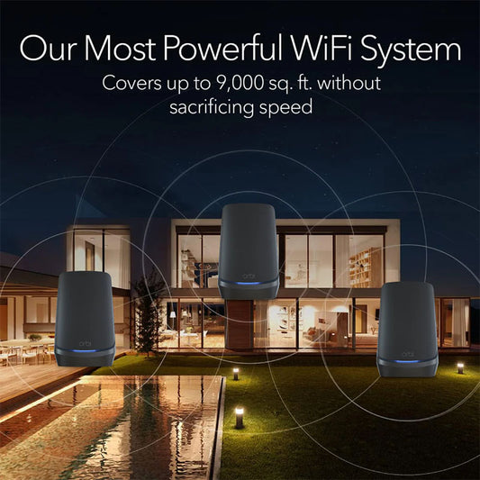 NETGEAR Orbi 960 Quad-Band WiFi 6E Mesh System - AXE11000 10.8Gbps - 3-Pack, Black (RBKE963B)