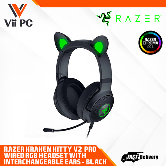 RAZER Kraken Kitty V2 Pro - Wired RGB Headset with Interchangeable Ears (Black/Quartz) - FRML Packaging