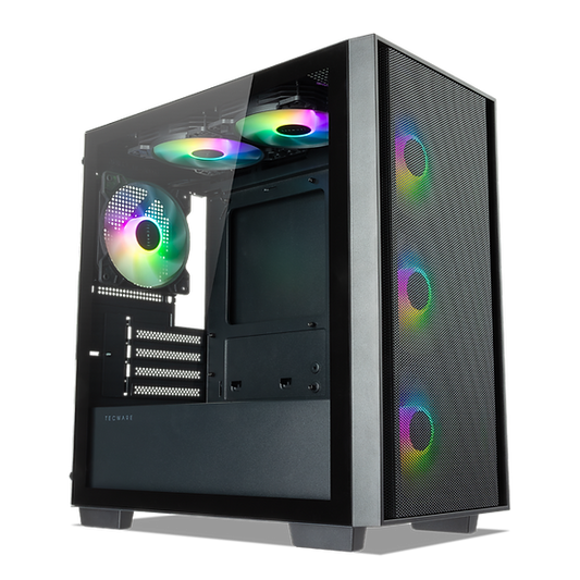 TECWARE Nexus Air T3 Compact MATX Tempered Glass Case (Black) - Pre-installed with 6x12cm ARGB Fans