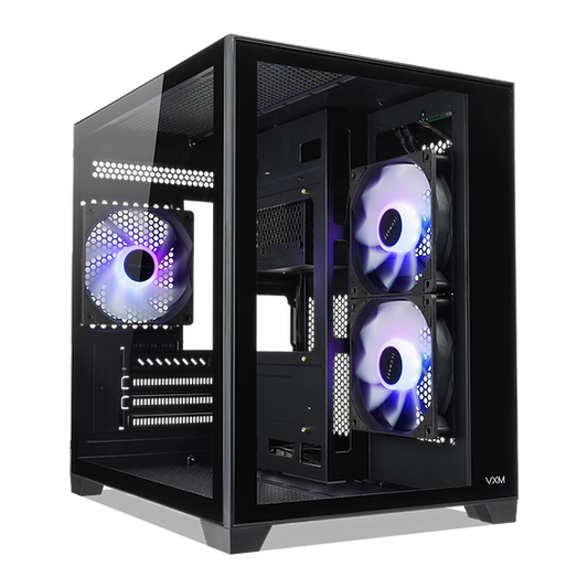 TECWARE VXM2 Dual Chamber MATX Case (Black) - Front and Side Tempered Glass Panels