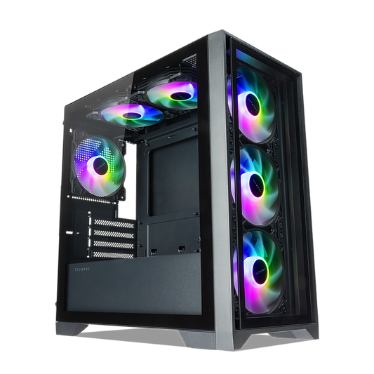 TECWARE NEXUS Air M3 High Airflow MATX Tempered Glass Case (Black) - Pre-installed with 6x12cm ARGB Fans