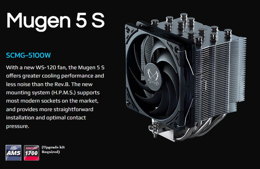 Scythe Mugen 5 S Edition Tower Cooler with 6*6cm Heatpipe CPU Air Cooler, 120mm Single Tower, AMD AM5/AM4/Ryzen, Intel LGA 1700/1200/1151