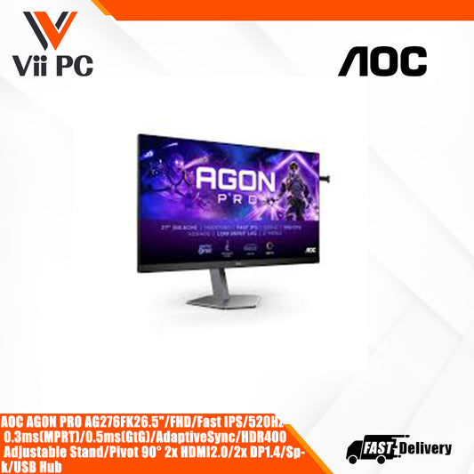 AOC AGON PRO AG276FK * 26.5"/FHD/Fast IPS/520Hz * 0.3ms(MPRT)/0.5ms(GtG)/AdaptiveSync/HDR400 * Adjustable Stand/Pivot 90° * 2x HDMI2.0/2x DP1.4/Spk/USB Hub gaming monitor