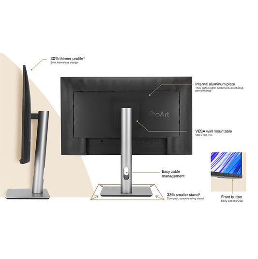 ASUS ProArt Display PA329CV Professional Monitor - 32" IPS, 4K UHD (3840x2160), 100% sRGB, 100% Rec.709, Color Accuracy ΔE<2, Calman Verified, USB-C, HDR-400, C-clamp, Ergonomic Stand