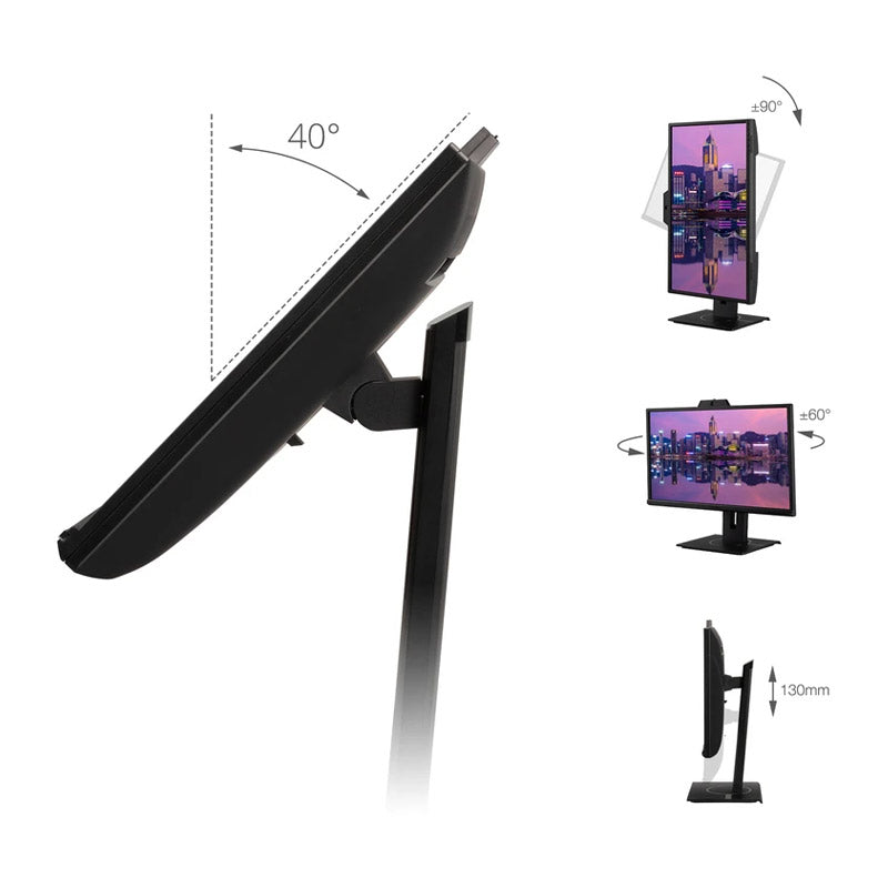 Effortlessly swivel the display up to 120 degrees, tilt up to 40 degrees, raise the display up to 130mm, or pivot 90 degrees for portrait viewing. The VG2440V offers the full range of ergonomic flexibility for every task and workflow.- Swivel, Tilt, Pivot and Height