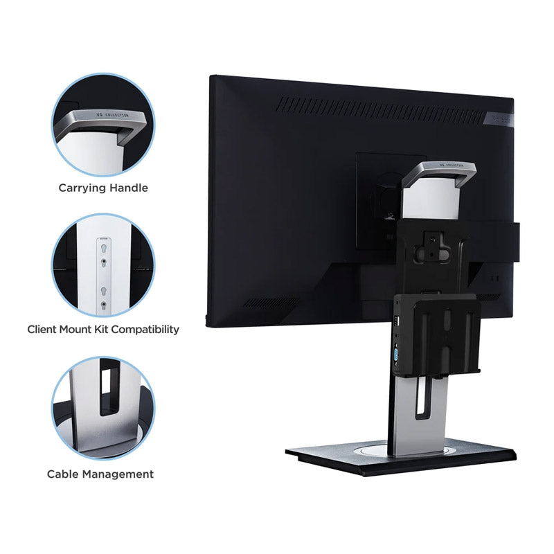 In addition to the single cable USB Type-C connectivity that reduces the reliance on multiple cables and adapters, the monitor’s stand is also designed with cable management and client mount capability to create a cleaner looking space.*Client Mount Kit must be used to attach a mini PC. Client mount kit is sold separately.