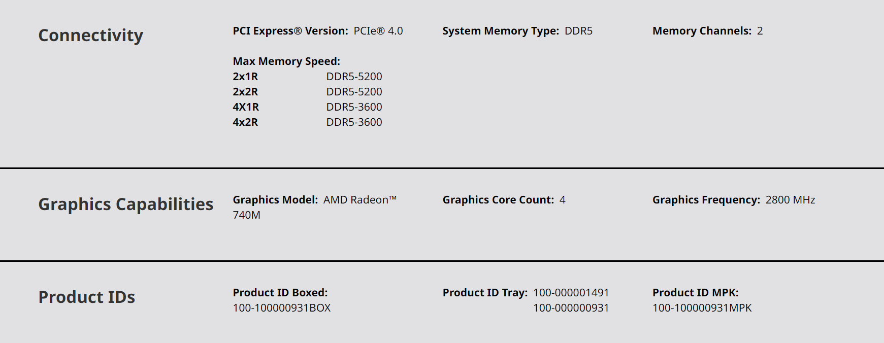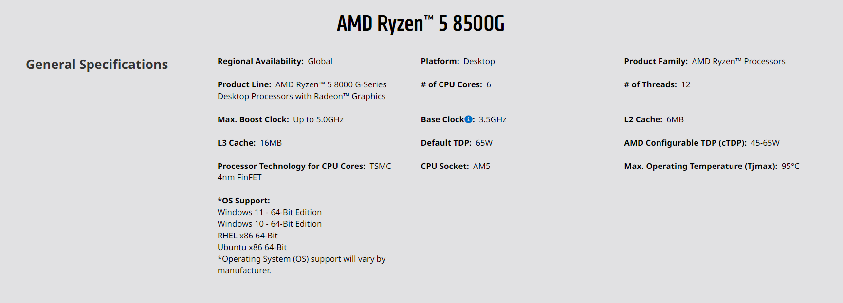Product Line: AMD Ryzen™ 5 8000 G-Series Desktop Processors with Radeon™ Graphics