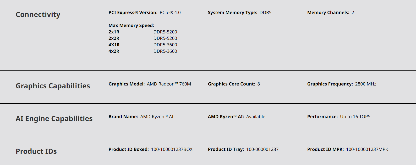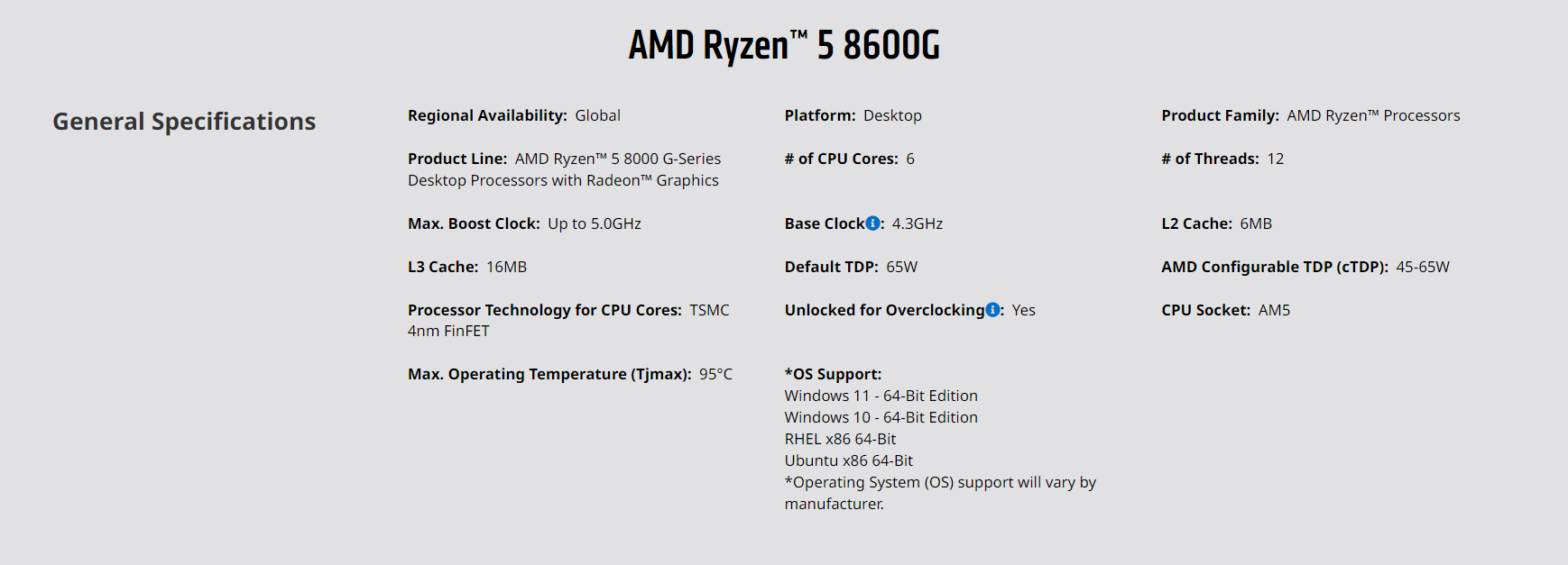 Product Line: AMD Ryzen™ 5 8000 G-Series Desktop Processors with Radeon™ Graphics