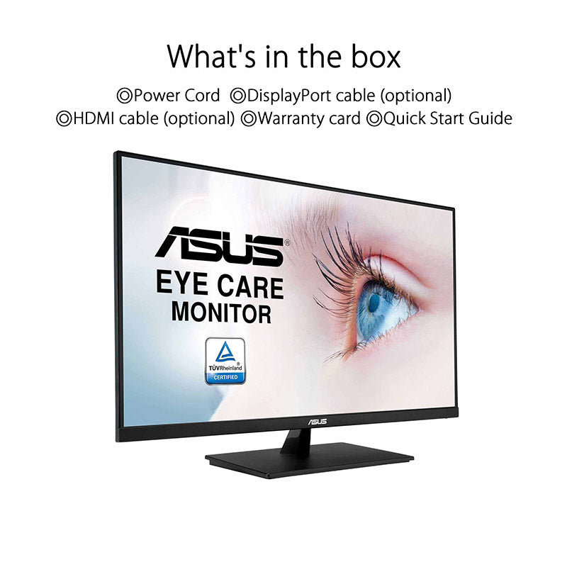 - ASUS Eye Care monitors feature TÜV Rheinland-certified Flicker-free and Low Blue Light technologies to ensure a comfortable viewing experience