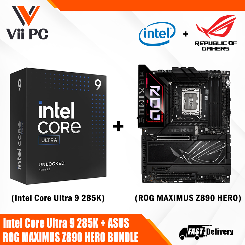This bundle offers exceptional performance for gaming, content creation, and productivity. The Intel® Core™ Ultra 9 Processor 285K and ROG MAXIMUS Z890 HERO motherboard provide the cutting-edge power, speed, and connectivity needed to tackle demanding tasks. Whether you’re building a high-performance gaming system or a powerhouse workstation, this combo ensures you have the tools for success.