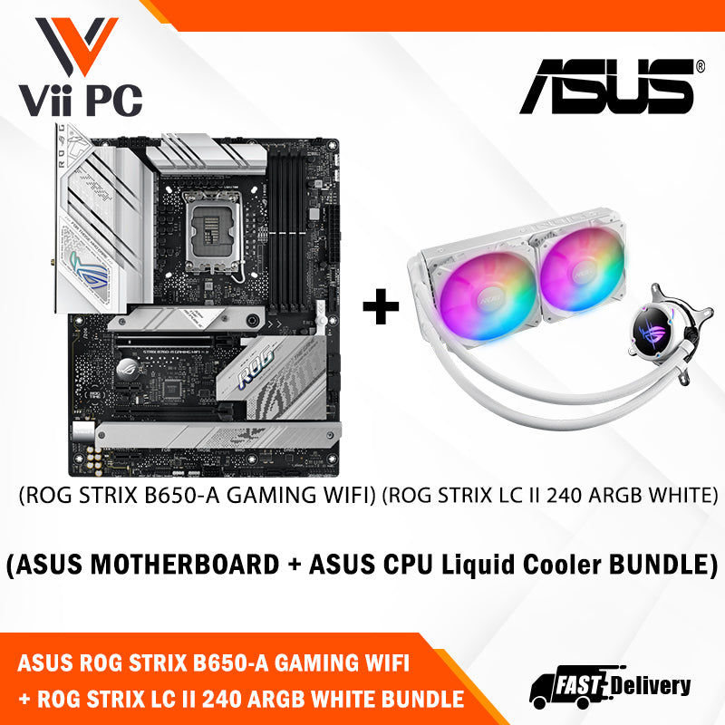 ASUS ROG STRIX LC II 240 ARGB AIO White Edition CPU Liquid Cooler + ASUS ROG STRIX B760-A GAMING WIFI DDR5 ATX Motherboard (AIO Cooler BUNDLE)