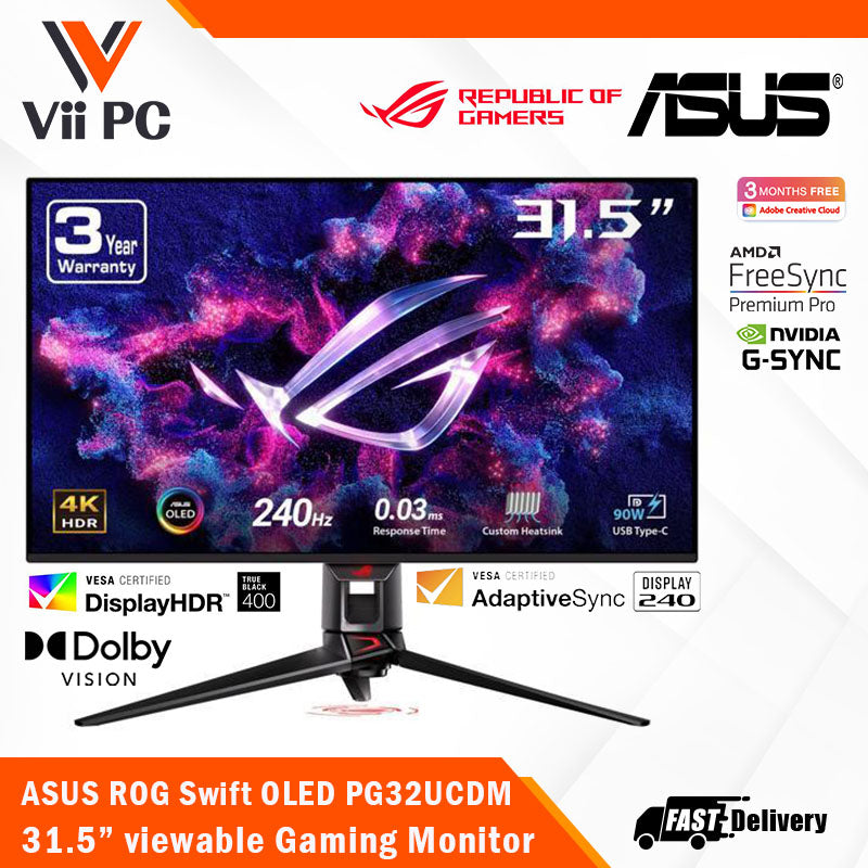 ASUS ROG Swift OLED PG32UCDM 32" Gaming Monitor - 32" (31.5 inch viewable) 4K (3840 x 2160) QD-OLED panel, 240 Hz, 0.03 ms (GTG), G-SYNC® compatible, custom heatsink, graphene film, uniform brightness, 99% DCI-P3, 90 W Type-C® (*Pre-Order 30days)