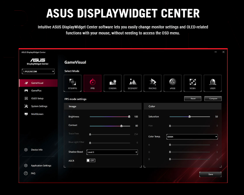- DisplayWidget Center allows users to access OLED Care functions, as well as adjust monitor settings with a mouse