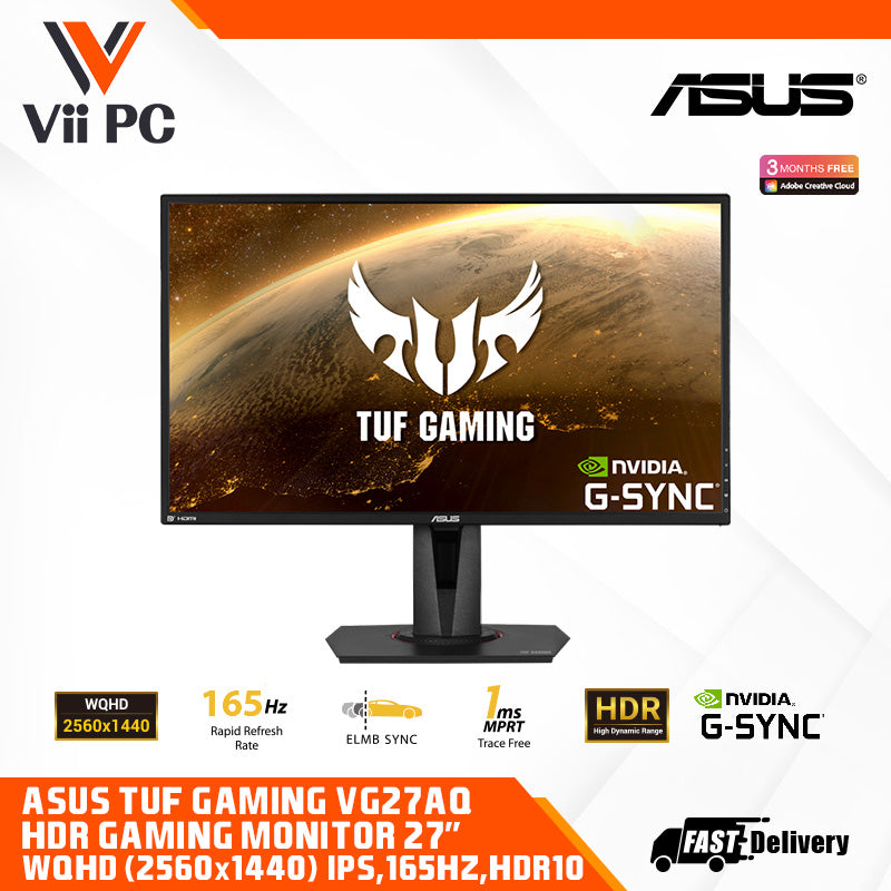ASUS TUF Gaming VG27AQ HDR Gaming Monitor - 27" WQHD (2560x1440), IPS, 165Hz, Extreme Low Motion Blur Sync, G-SYNC Compatible, Adaptive-Sync, 1ms (MPRT), HDR10