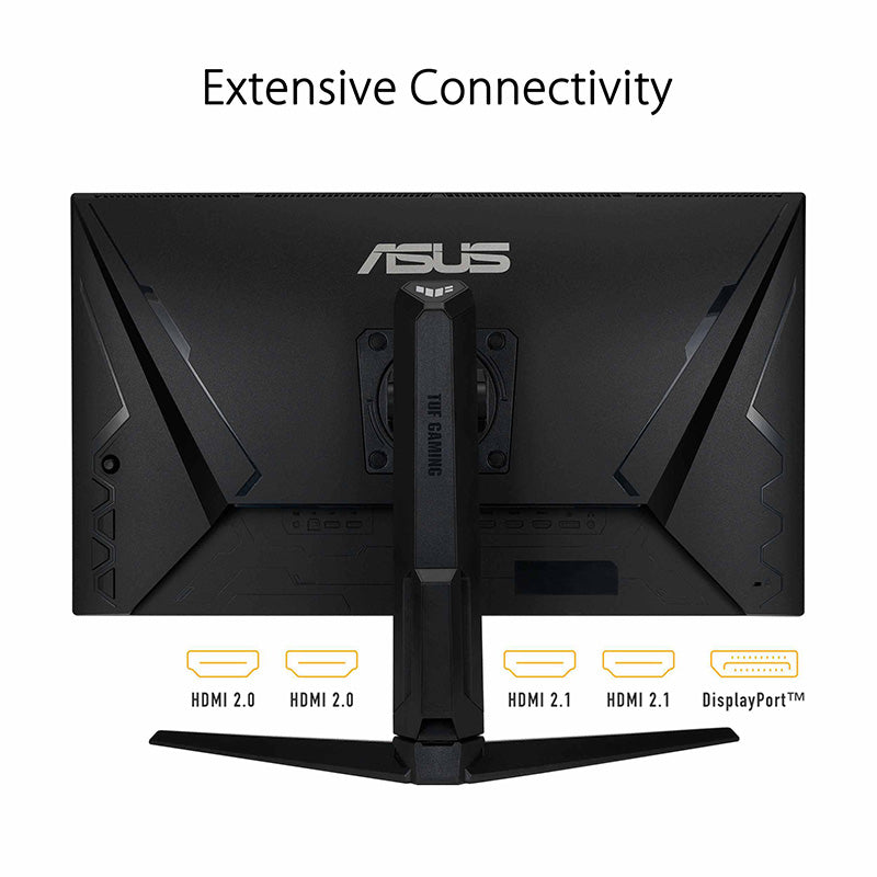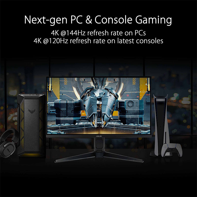 The 28-inch TUF Gaming VG28UQL1A 4K UHD gaming monitor featuring a Fast IPS panel and NVIDIA® G-SYNC® Compatible for blistering-fast 144 Hz gaming. Its clever combination of Display Stream Compression (DSC), ASUS Extreme Low Motion Blur Sync (ELMB Sync) and AMD FreeSync™ Premium technologies enables buttery-smooth gaming on PCs. Console gamers can get their fix, too, as TUF Gaming VG28UQL1A supports up to 4K 120 Hz visuals via HDMI® 2.1 without chroma subsampling. In addition, it meets DisplayHDR™ 400 compliance standards and has a 90% DCI-P3 gamut to offer exceptional colors and contrast.