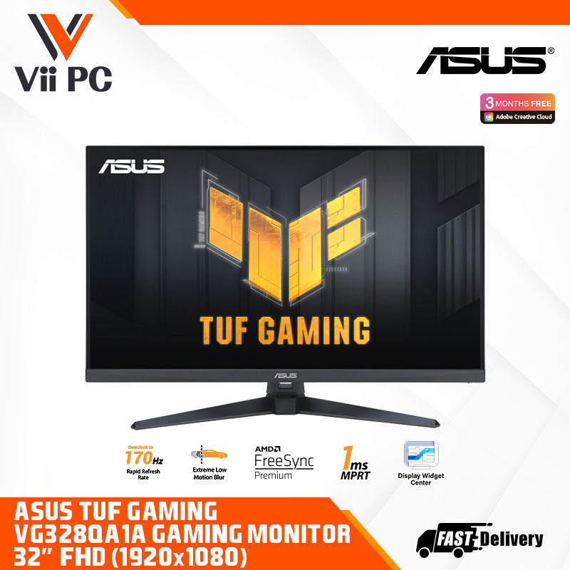 TUF Gaming VG328QA1A is a 31.5-inch Full HD (1920 x 1080) gaming monitor with an overclocking 170Hz refresh rate and 1 ms (MPRT) response time for extremely immersive gameplay. It features exclusive Extreme Low Motion Blur (ELMB) technology and AMD FreeSync™ Premium to eliminate ghosting and tearing. In addition, it also features 100% sRGB color gamut ensures exceptional contrast and color performance.