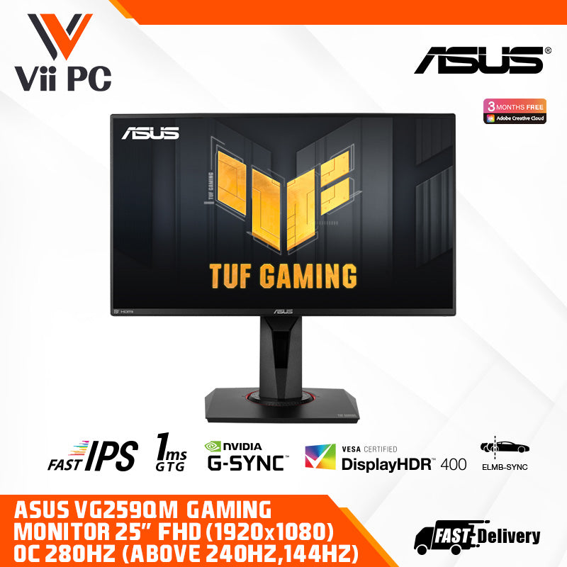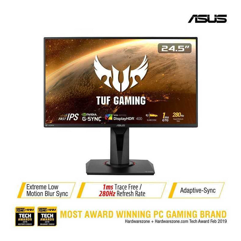 TUF Gaming VG259QM G-SYNC Compatible Gaming Monitor - 25 inch (24.5 inch viewable) Full HD (1920x1080), Fast IPS, Overclockable 280Hz (Above 240Hz, 144Hz), 1ms (GTG), Extreme Low Motion Blur Sync, G-SYNC Compatible, DisplayHDR™ 400