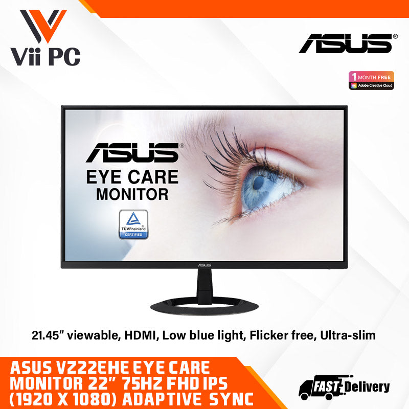 ASUS VZ22EHE Eye Care Monitor – 22" FHD (1920x1080) IPS, 75Hz, Adaptive-Sync, HDMI, Low blue light, Flicker free, Ultra-slim