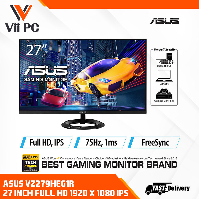 ASUS VZ279HEG1R Gaming Monitor 27 inch Full HD (1920 x 1080), IPS, 75Hz, 1ms MPRT, Extreme Low Motion Blur, FreeSync, Ultra-slim