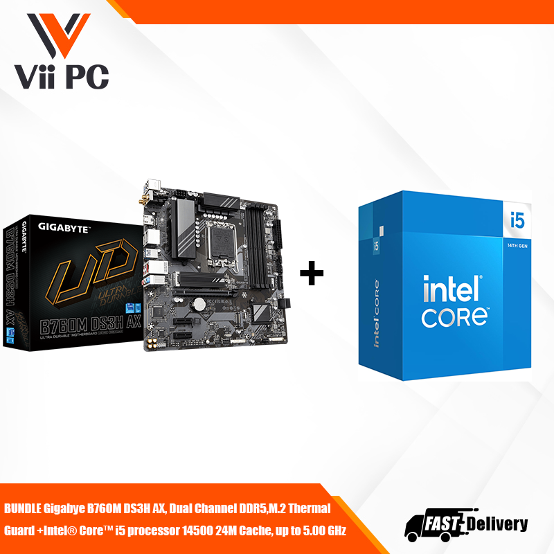GIGABYTE B760M DS3H AX Motherboard + Intel Core i5-14500 (14th GEN) Processor BUNDLE