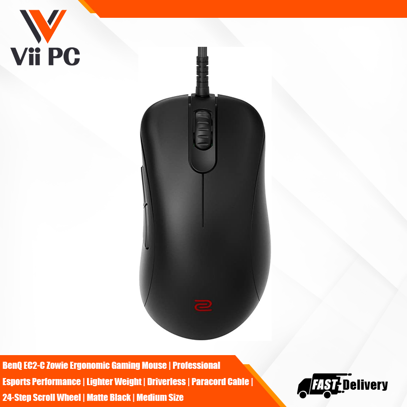 BenQ EC2-C Zowie Ergonomic Gaming Mouse | Professional Esports Performance | Lighter Weight | Driverless | Paracord Cable | 24-Step Scroll Wheel | Matte Black | Medium Size
