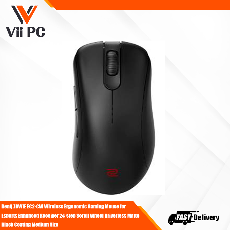 BenQ ZOWIE EC2-CW Wireless Ergonomic Gaming Mouse for Esports Enhanced Receiver 24-step Scroll Wheel Driverless Matte Black Coating Medium Size