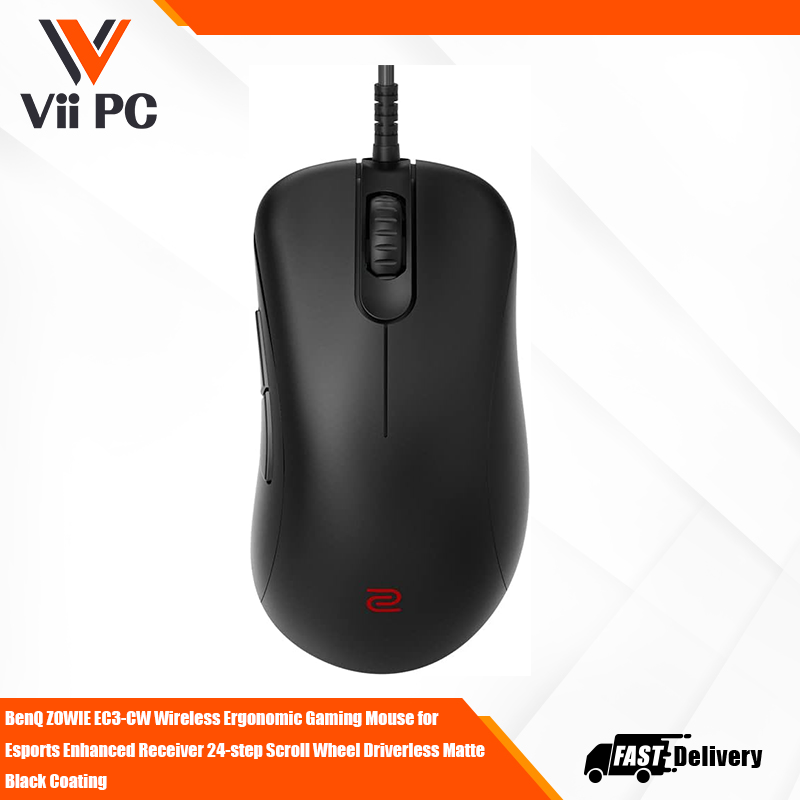 BenQ ZOWIE EC3-CW Wireless Ergonomic Gaming Mouse for Esports Enhanced Receiver 24-step Scroll Wheel Driverless Matte Black Coating