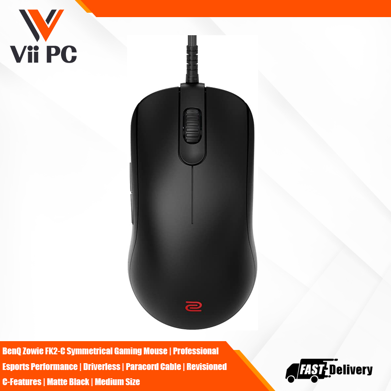 BenQ Zowie FK2-C Symmetrical Gaming Mouse | Professional Esports Performance | Driverless | Paracord Cable | Revisioned C-Features | Matte Black | Medium Size