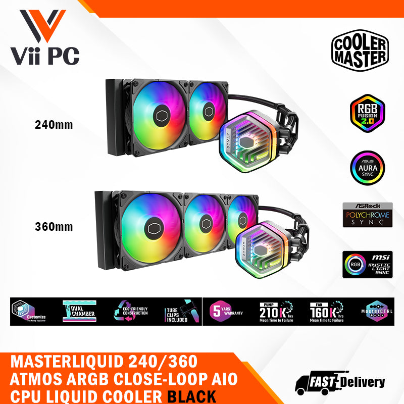 COOLER MASTER MASTERLIQUID 240/360 ATMOS ARGB CLOSE-LOOP AIO CPU LIQUID COOLER