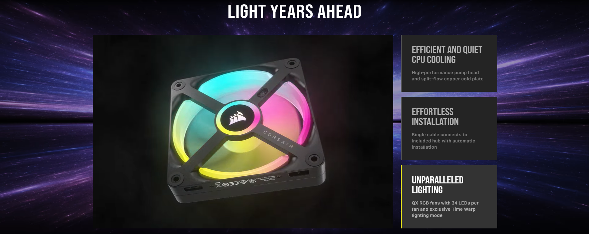 • 360mm Radiator with QX120 RGB fans spinning up to 2,400 RPM