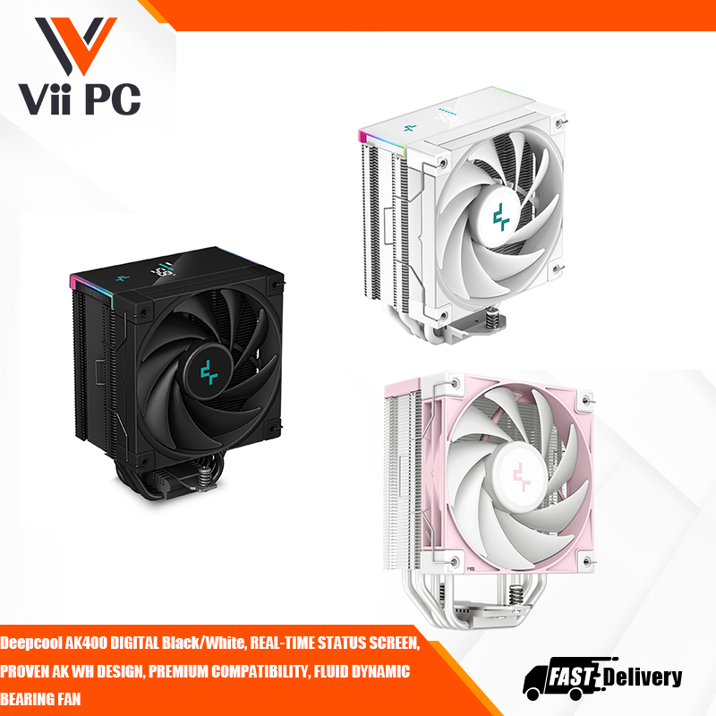 DeepCool AK400 DIGITAL (Black/White) - REAL-TIME STATUS SCREEN, PROVEN AK WH DESIGN, PREMIUM COMPATIBILITY, FLUID DYNAMIC BEARING FAN